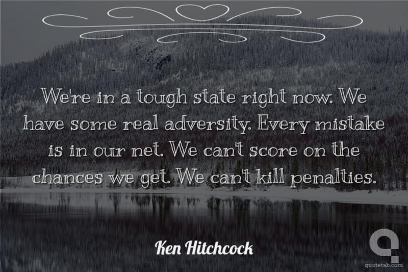 We're in a tough state right now. We have some real adversity. Every mistake is in our net. We can't score on the chances we get. We can't kill penalties. Ken Hitchcock