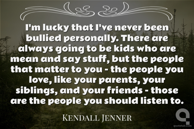 I'm lucky that I've never been bullied personally. There are always going to be kids who are mean and say stuff, but the people that matter to you - the people you love, like your parents, your siblings, and your friends - those are the people you should listen to. Kendall Jenner