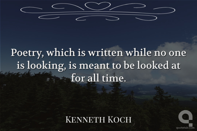 Poetry, which is written while no one is looking, is meant to be looked at for all time. Kenneth Koch