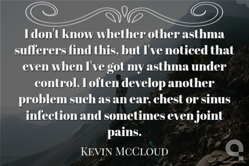 I don't know whether other asthma sufferers find this, but I've noticed that even when I've got my asthma under control, I often develop another problem such as an ear, chest or sinus infection and sometimes even joint pains. Kevin McCloud