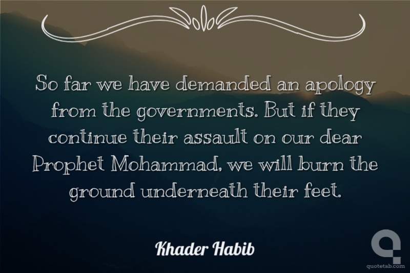 So far we have demanded an apology from the governments. But if they continue their assault on our dear Prophet Mohammad, we will burn the ground underneath their feet. Khader Habib