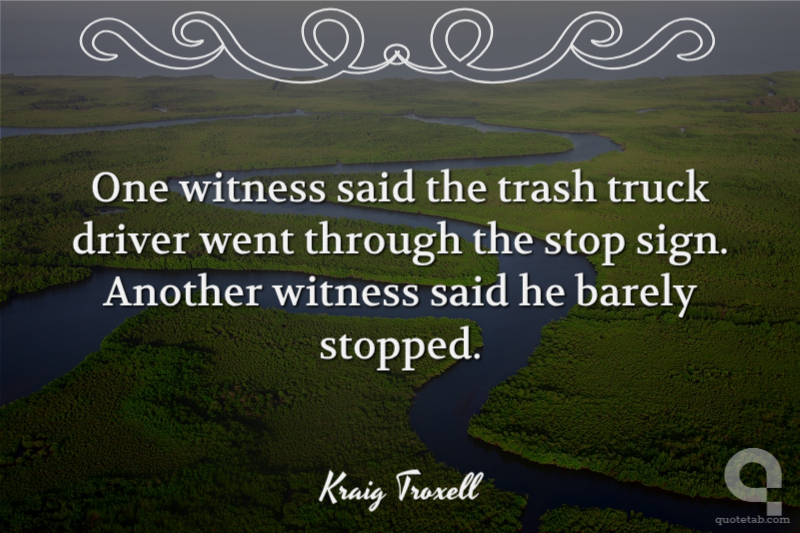 One witness said the trash truck driver went through the stop sign. Another witness said he barely stopped. Kraig Troxell