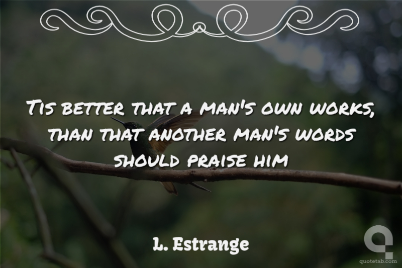 Tis better that a man's own works, than that another man's words should praise him L. Estrange