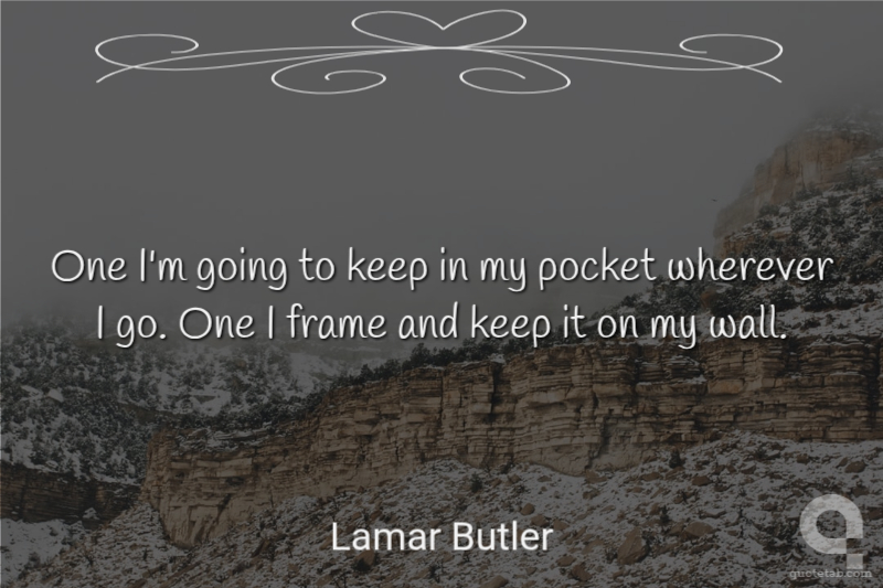 One I'm going to keep in my pocket wherever I go. One I frame and keep it on my wall. Lamar Butler