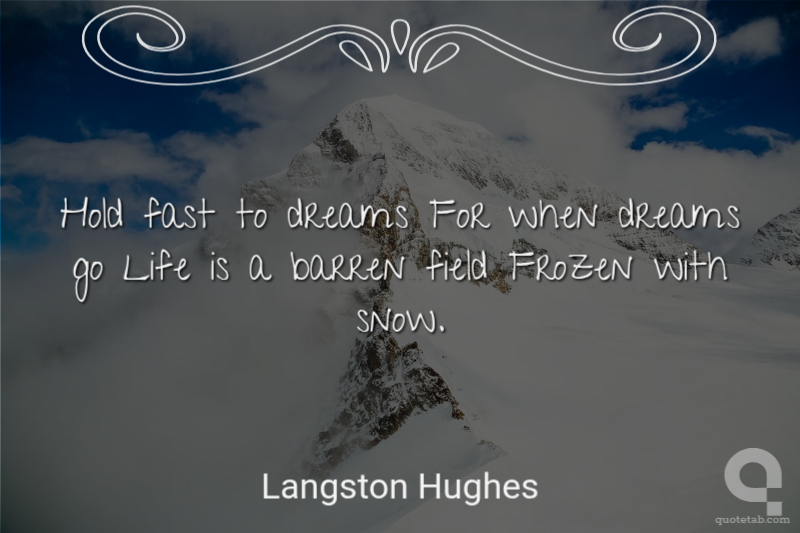 Hold fast to dreams For when dreams go Life is a barren field Frozen with snow. Langston Hughes