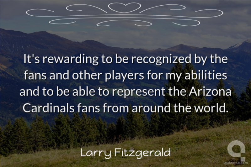 It's rewarding to be recognized by the fans and other players for my abilities and to be able to represent the Arizona Cardinals fans from around the world. Larry Fitzgerald