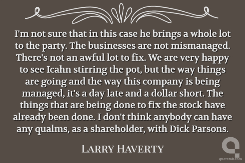 Let's just wait on that and make sure what's written and what's said is correct. Mike Holmgren