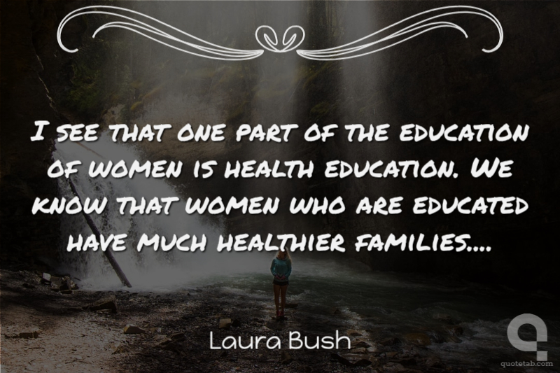 I see that one part of the education of women is health education. We know that women who are educated have much healthier families.... Laura Bush