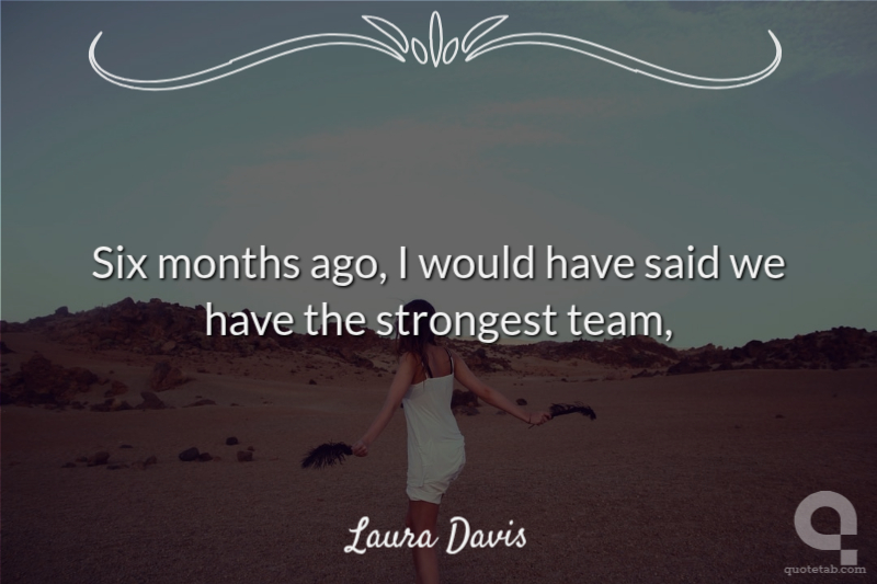 Six months ago, I would have said we have the strongest team, Laura Davis