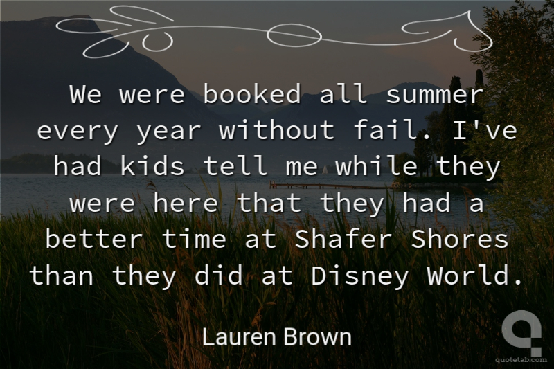 We were booked all summer every year without fail. I've had kids tell me while they were here that they had a better time at Shafer Shores than they did at Disney World. Lauren Brown