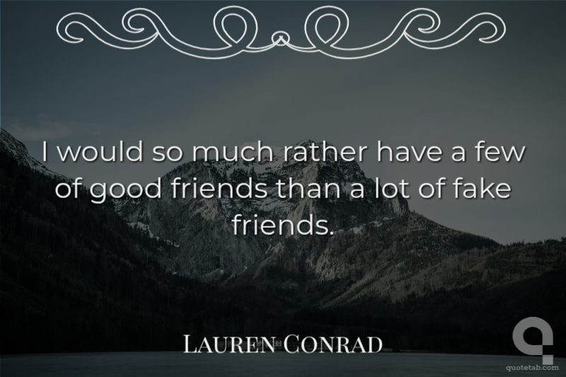 I would so much rather have a few of good friends than a lot of fake friends. Lauren Conrad