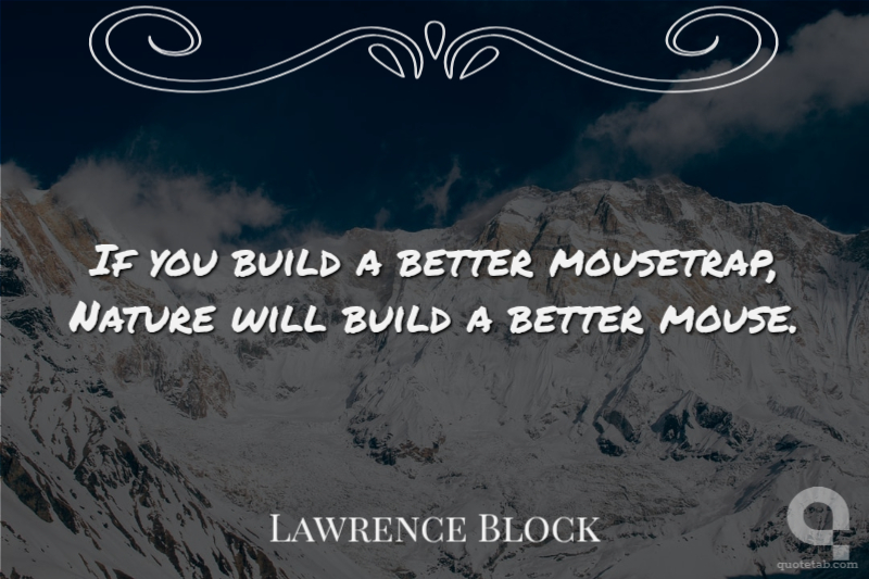 If you build a better mousetrap, Nature will build a better mouse. Lawrence Block