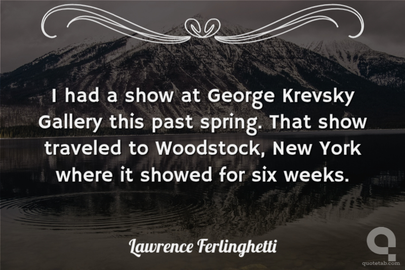 I had a show at George Krevsky Gallery this past spring. That show traveled to Woodstock, New York where it showed for six weeks. Lawrence Ferlinghetti