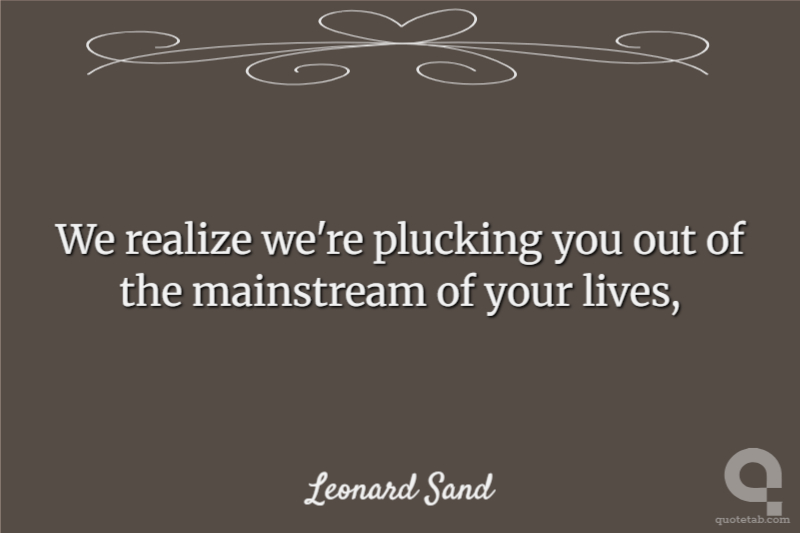 We realize we're plucking you out of the mainstream of your lives, Leonard Sand
