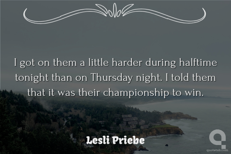 I got on them a little harder during halftime tonight than on Thursday night. I told them that it was their championship to win. Lesli Priebe