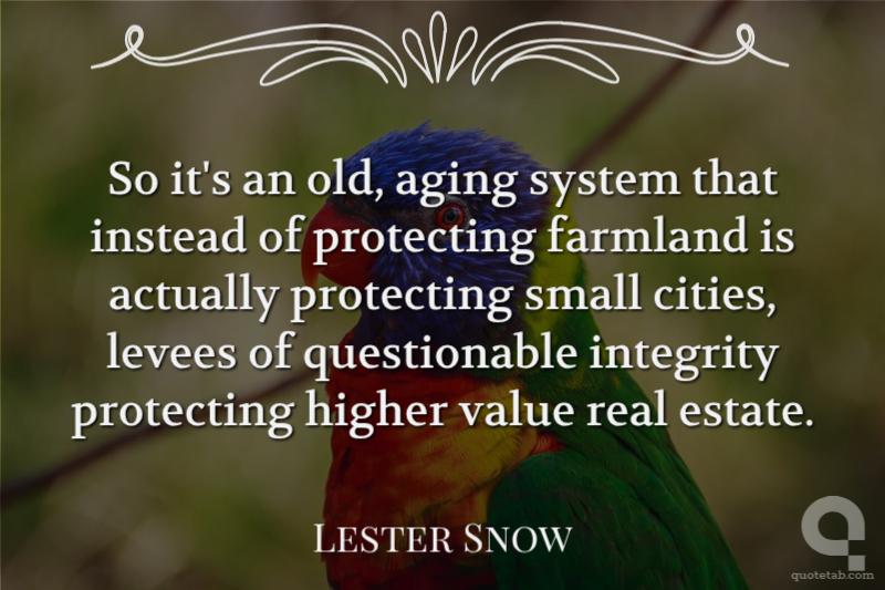 So it's an old, aging system that instead of protecting farmland is actually protecting small cities, levees of questionable integrity protecting higher value real estate. Lester Snow