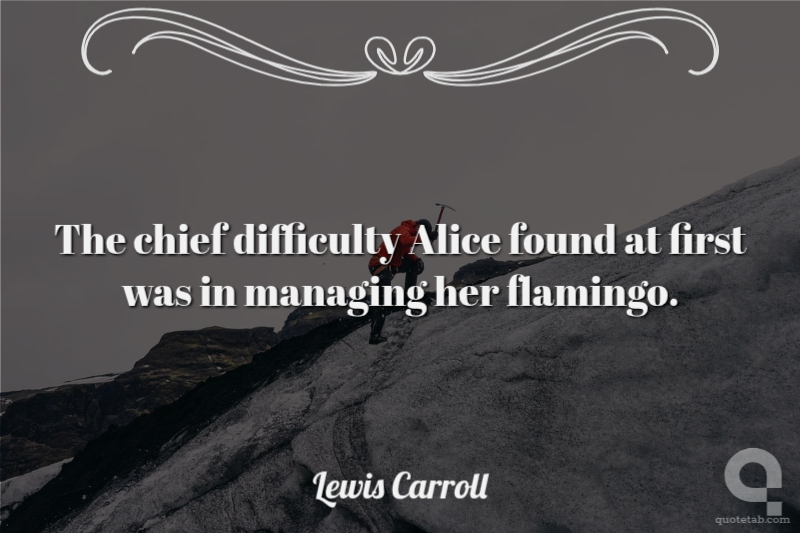 The chief difficulty Alice found at first was in managing her flamingo. Lewis Carroll