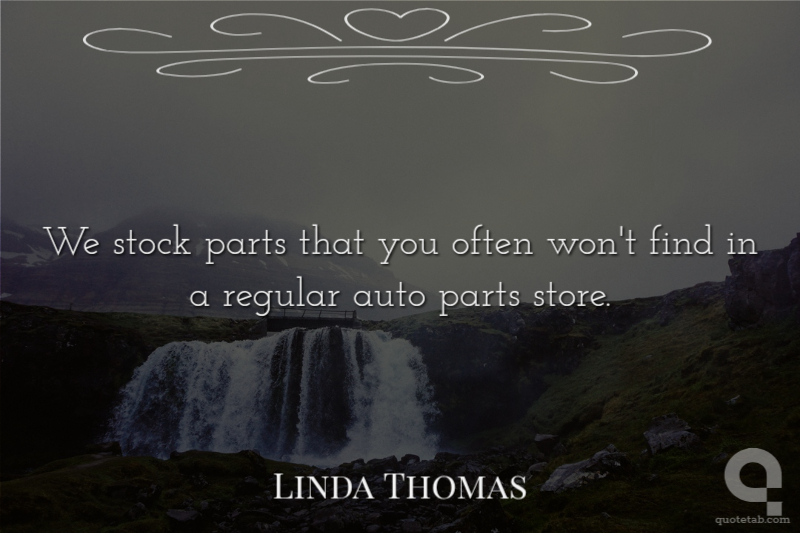 We stock parts that you often won't find in a regular auto parts store. Linda Thomas