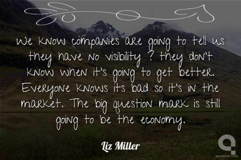 We know companies are going to tell us they have no visibility ? they don't know when it's going to get better. Everyone knows its bad so it's in the market. The big question mark is still going to be the economy. Liz Miller