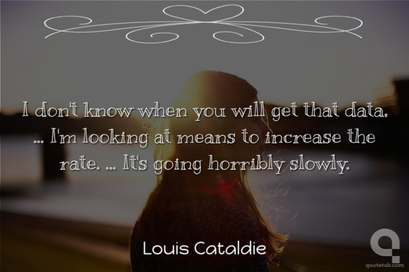 I don't know when you will get that data, ... I'm looking at means to increase the rate. ... It's going horribly slowly. Louis Cataldie