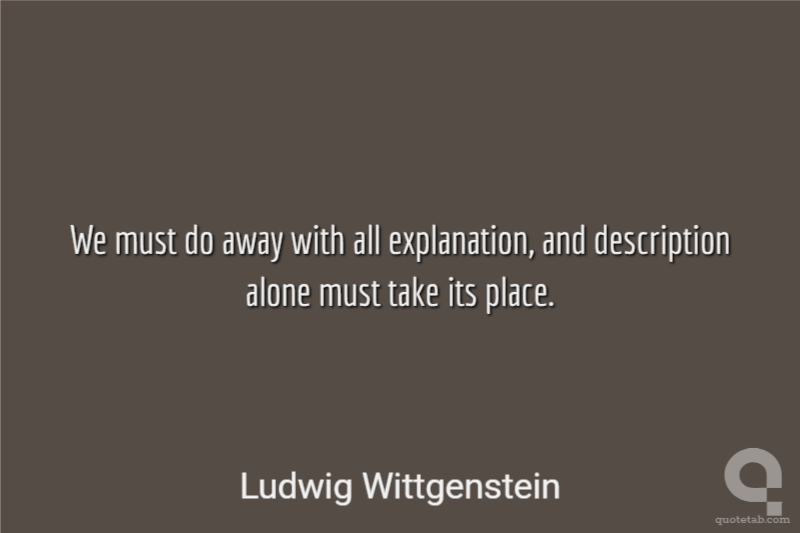 We must do away with all explanation, and description alone must take its place. Ludwig Wittgenstein