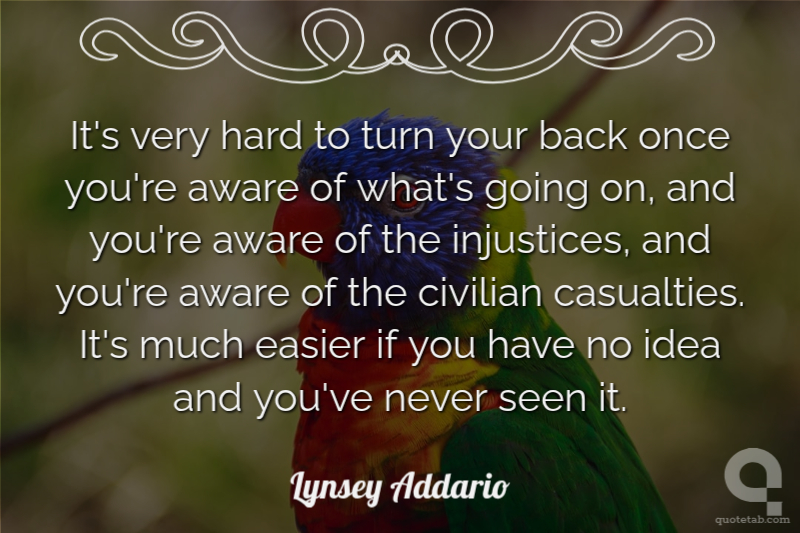 It's very hard to turn your back once you're aware of what's going on, and you're aware of the injustices, and you're aware of the civilian casualties. It's much easier if you have no idea and you've never seen it. Lynsey Addario