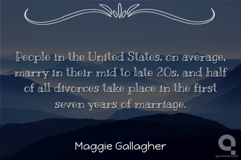 People in the United States, on average, marry in their mid to late 20s, and half of all divorces take place in the first seven years of marriage. Maggie Gallagher
