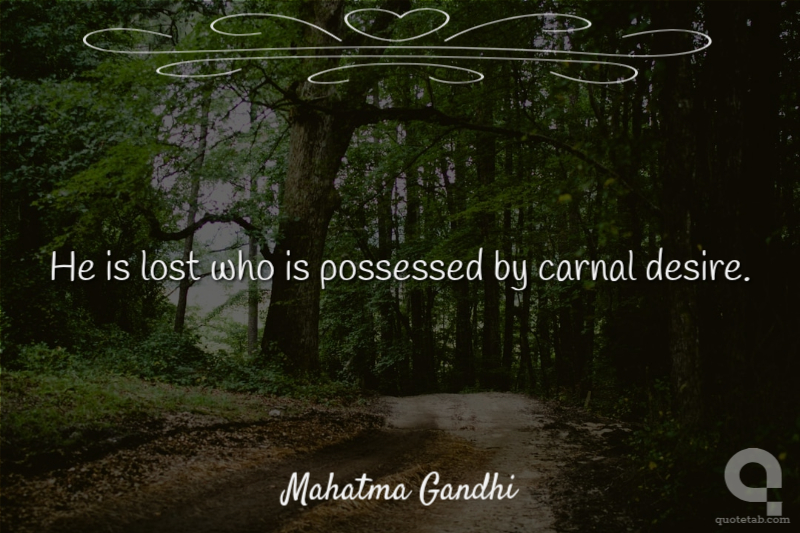 He is lost who is possessed by carnal desire. Mahatma Gandhi