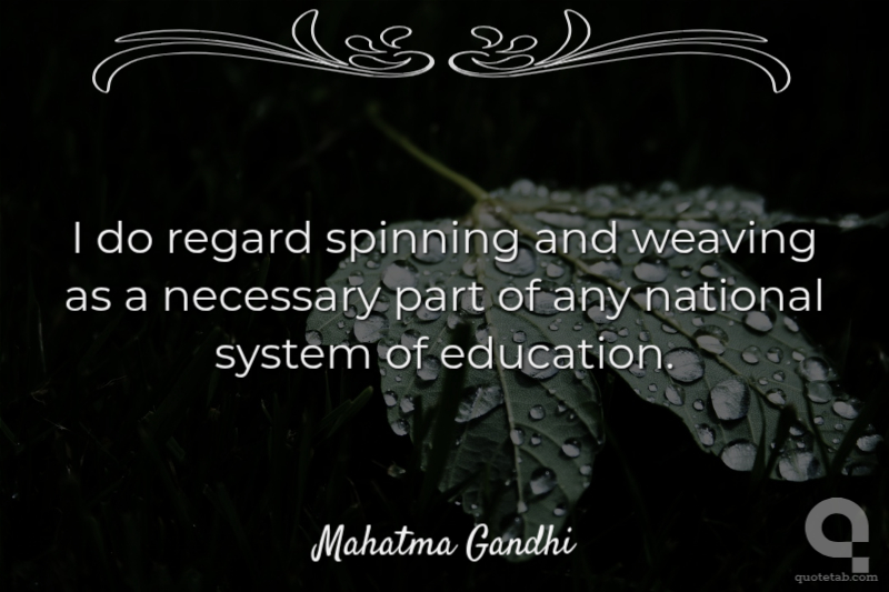 I do regard spinning and weaving as a necessary part of any national system of education. Mahatma Gandhi