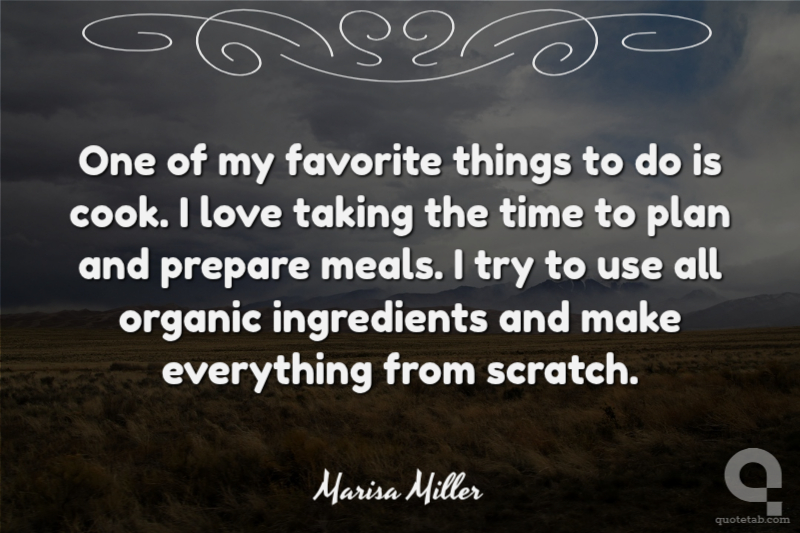One of my favorite things to do is cook. I love taking the time to plan and prepare meals. I try to use all organic ingredients and make everything from scratch. Marisa Miller