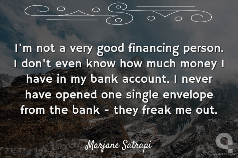 I'm not a very good financing person. I don't even know how much money I have in my bank account. I never have opened one single envelope from the bank - they freak me out. Marjane Satrapi