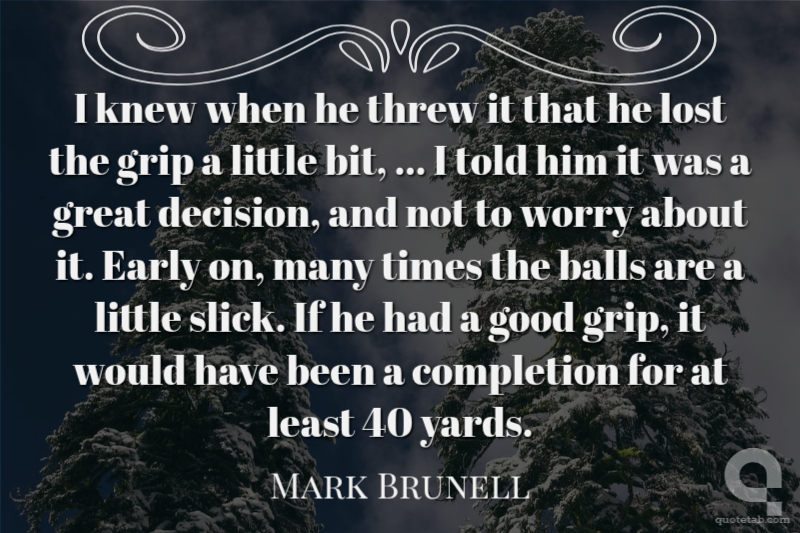 The quarterback's completion percentage -- even in the first two weeks -- is pretty good, ... That should lead to more productivity. Brian Billick