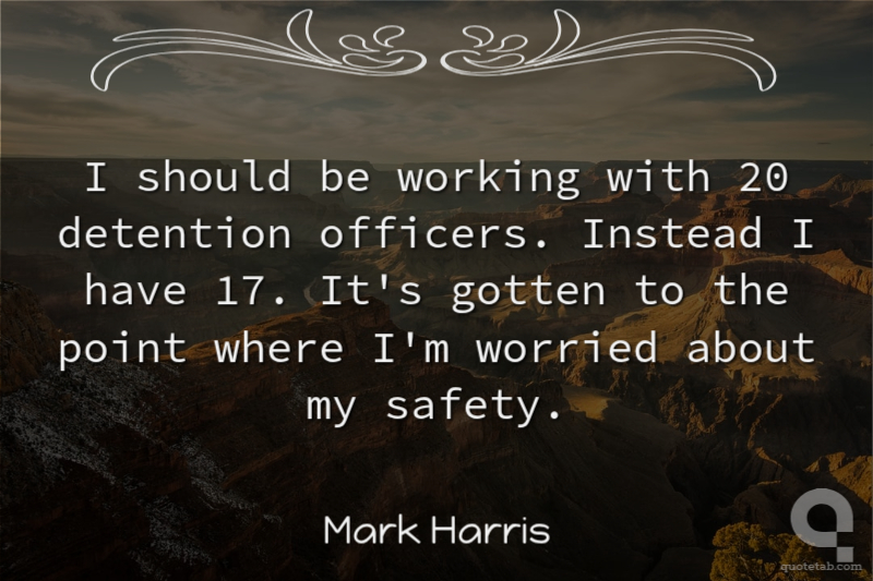 I should be working with 20 detention officers. Instead I have 17. It's gotten to the point where I'm worried about my safety. Mark Harris