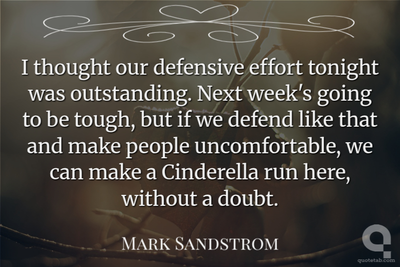 We knew they were on a roll and this is like their Cinderella season. We knew they?d be up for the game and we knew there was a possibility it would be close. We just had to play our game and that?s we did. Kerry Loughran