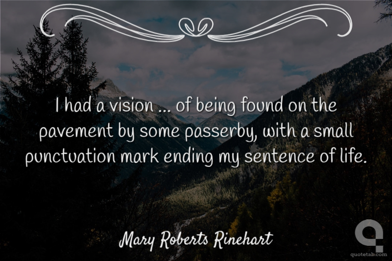 I had a vision ... of being found on the pavement by some passerby, with a small punctuation mark ending my sentence of life. Mary Roberts Rinehart