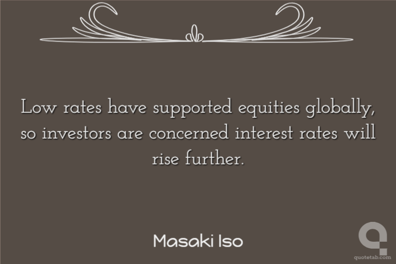 Low rates have supported equities globally, so investors are concerned interest rates will rise further. Masaki Iso