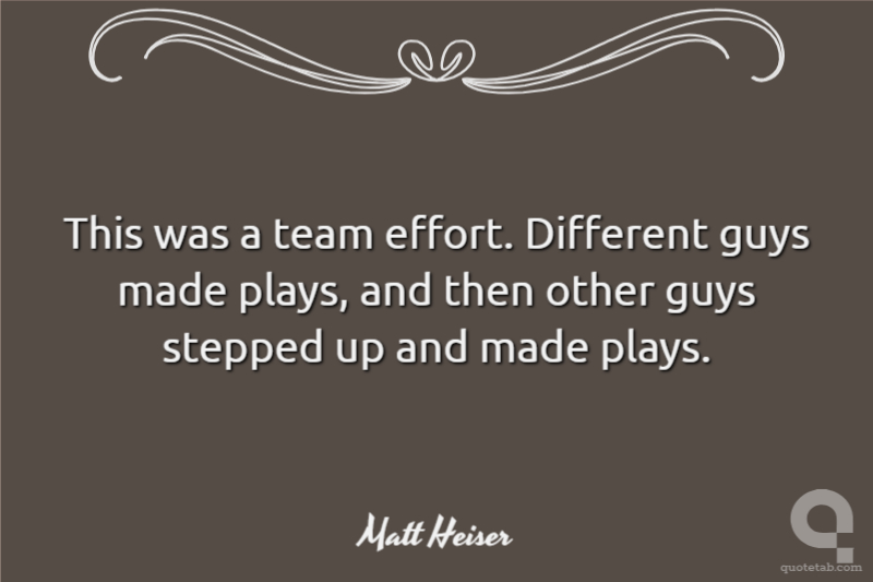 When everyone had written us out of the chase, that spurred these guys on, and we weren't going to go down without a fight. Robbie Reiser