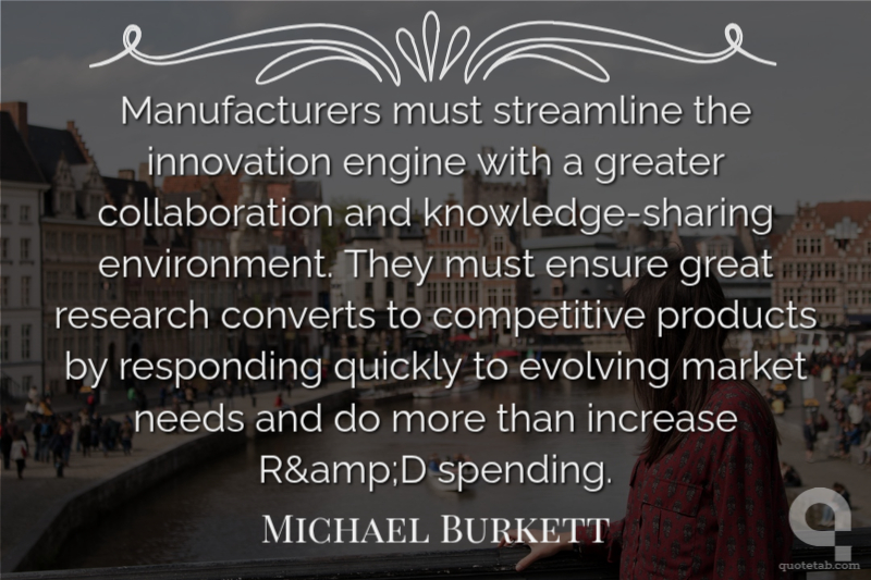 Manufacturers must streamline the innovation engine with a greater collaboration and knowledge-sharing environment. They must ensure great research converts to competitive products by responding quickly to evolving market needs and do more than increase R&D spending. Michael Burkett