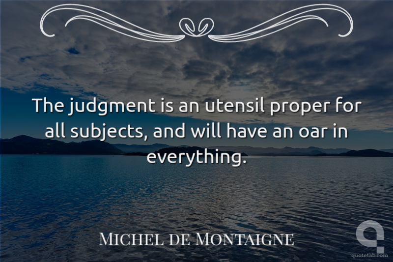 The judgment is an utensil proper for all subjects, and will have an oar in everything. Michel de Montaigne