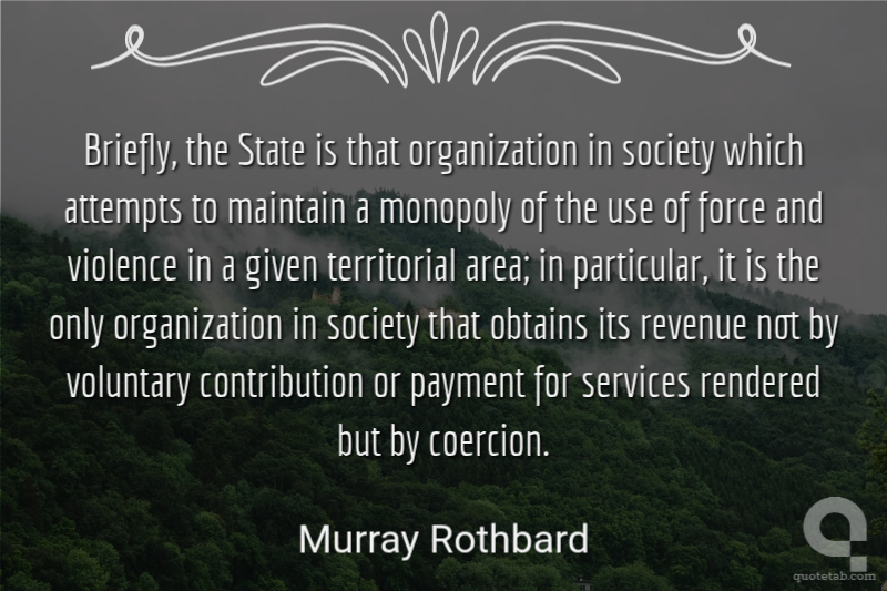 Only the State legally obtains its revenue by coercion. Murray Rothbard