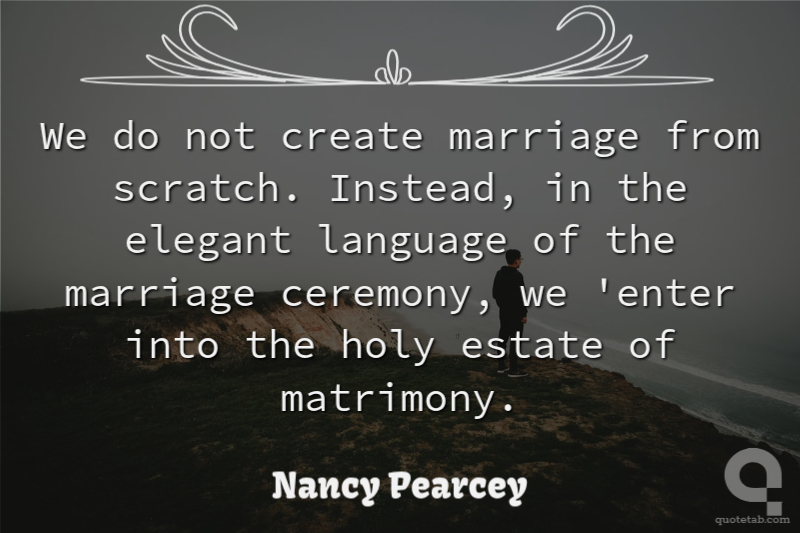 We do not create marriage from scratch. Instead, in the elegant language of the marriage ceremony, we 'enter into the holy estate of matrimony. Nancy Pearcey