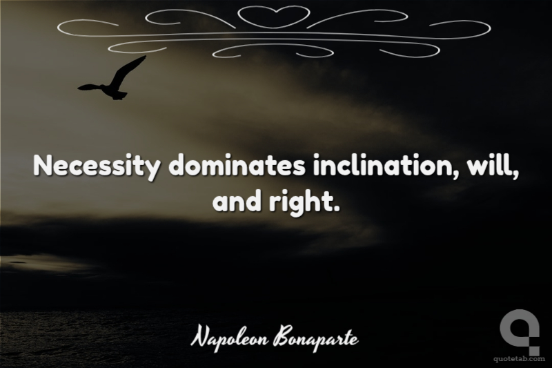 Napoleon Bonaparte Necessity dominates inclination, will, and right.