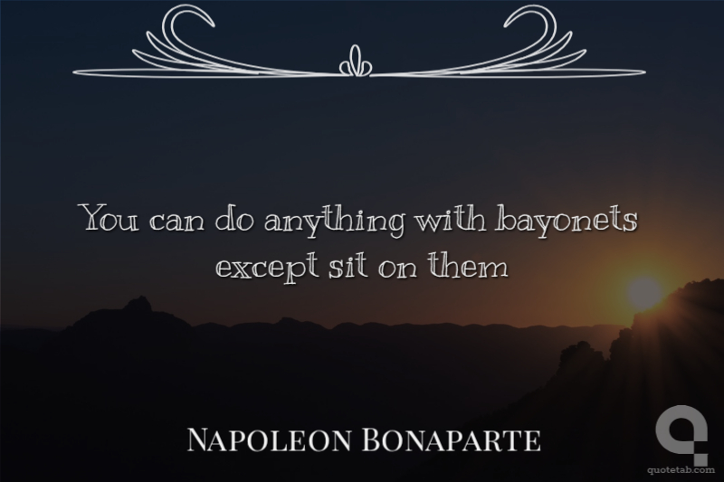 You can do anything with bayonets except sit on them Napoleon Bonaparte