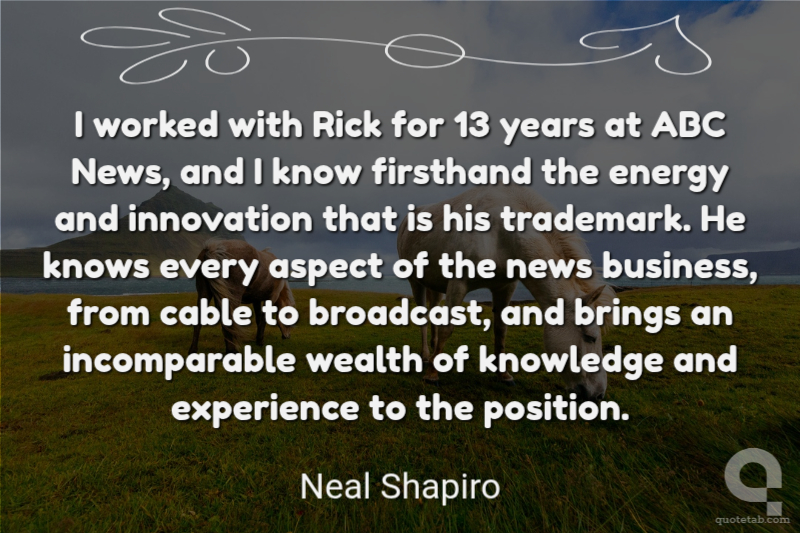I worked with Rick for 13 years at ABC News, and I know firsthand the energy and innovation that is his trademark. He knows every aspect of the news business, from cable to broadcast, and brings an incomparable wealth of knowledge and experience to the position. Neal Shapiro