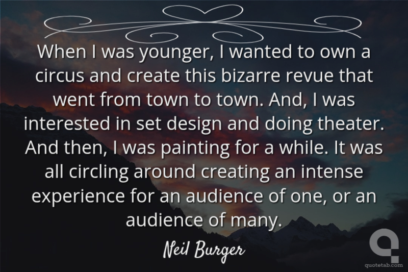 When I was younger, I wanted to own a circus and create this bizarre revue that went from town to town. And, I was interested in set design and doing theater. And then, I was painting for a while. It was all circling around creating an intense experience for an audience of one, or an audience of many. Neil Burger