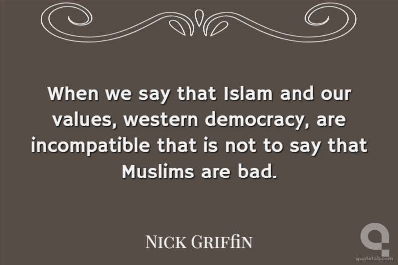 When we say that Islam and our values, western democracy, are incompatible that is not to say that Muslims are bad. Nick Griffin