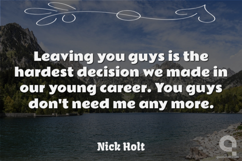 Leaving you guys is the hardest decision we made in our young career. You guys don't need me any more. Nick Holt