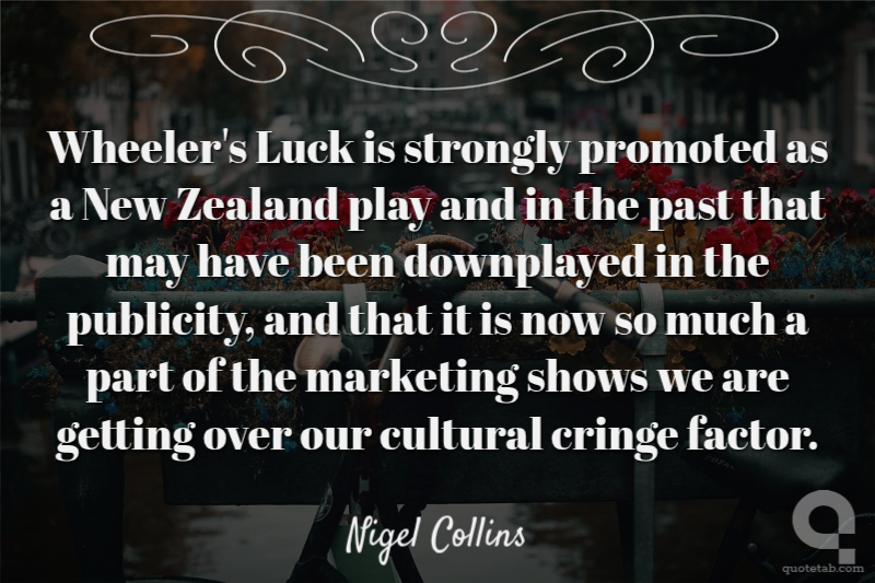 Wheeler's Luck is strongly promoted as a New Zealand play and in the past that may have been downplayed in the publicity, and that it is now so much a part of the marketing shows we are getting over our cultural cringe factor. Nigel Collins