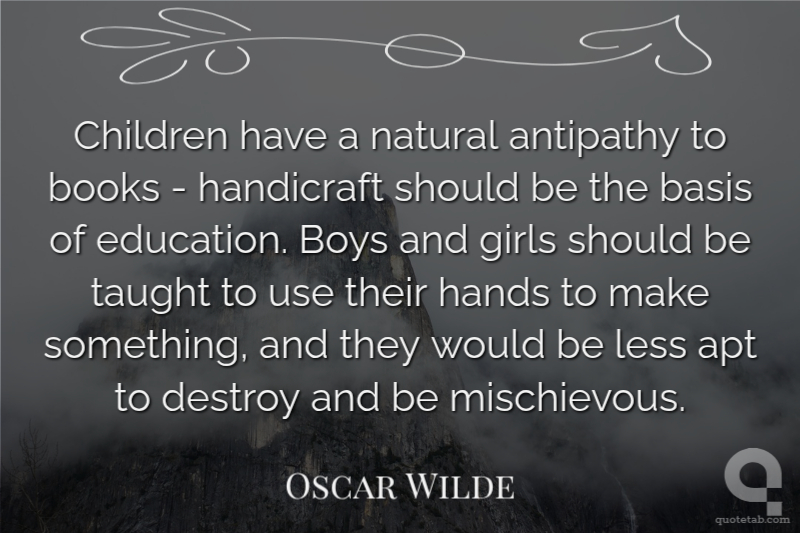 Children have a natural antipathy to books - handicraft should be the basis of education. Boys and girls should be taught to use their hands to make something, and they would be less apt to destroy and be mischievous. Oscar Wilde