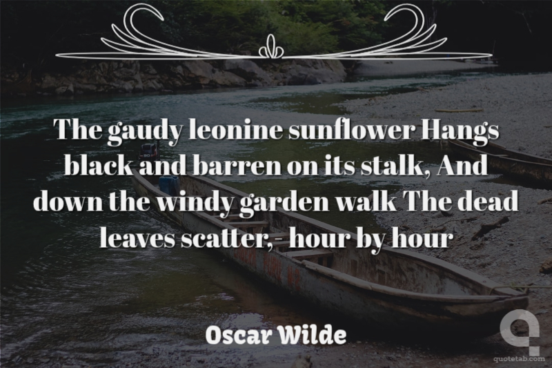 Time turns the old days to derision, Our loves into corpses or wives; And marriage and death and division Make barren our lives. Algernon Charles Swinburne